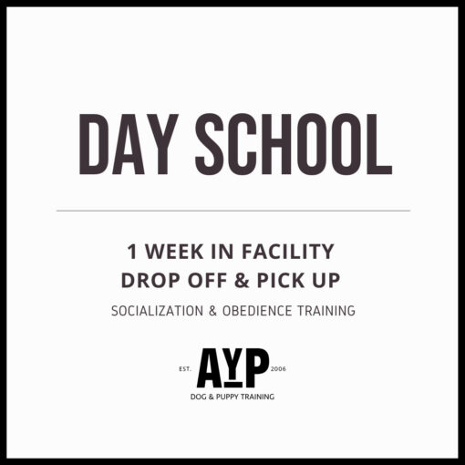 What it is: This one-week day school program is a great value combining daycare with an hour of training with your dog. Our certified dog trainers will be training your dog for an hour each day, which saves you the upfront work. At the point you are ready to begin working with your dog, our dog trainer will go over what the dog has learned and what you need to do to maintain or advance your dog’s skills. Benefits: As much upfront work as you would like done is done by our professional dog trainers. This allows the dog to learn faster, and not be held up by any dog training learning curve. This makes training down the road easier on you, the dog owner. Since your dog is our daycare, your hourly training rate is discounted because of the time flexibility it allows Applause Your Paws to schedule these sessions. Your dog will be around the distraction of daycare and the activity at our canine training center, which gives them distractions to learn around. As an additional benefit, your dog will have had exercise and social interactions with other canines throughout the day. This also allows us to really get to know your dog, and know what areas that they need the most training. Included in the Day-Train Package: